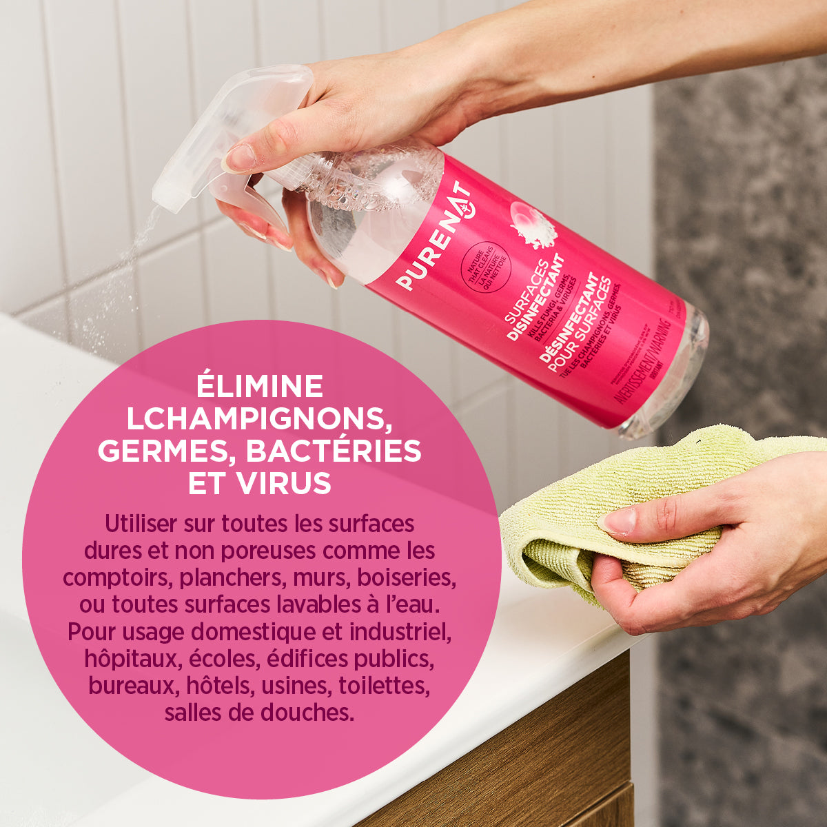 DÉSINFECTANT écologique et ultra-efficace. Sans danger pour les planchers, les murs, les boiseries, ou toutes surfaces lavables à l’eau. Peut être employé dans les hôpitaux, les écoles, les édifices, les bureaux, les hôtels, les usines, les toilettes et salles de douches.
