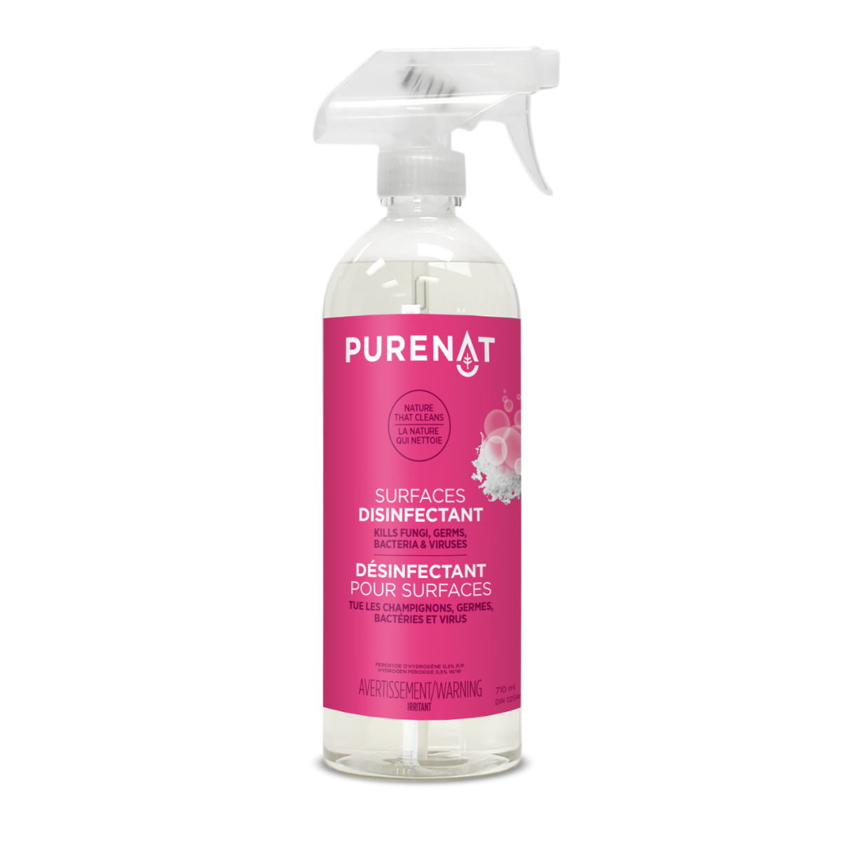 À utiliser sur les surfaces dures et non poreuses. Pour les surfaces très souillées, nettoyer d’abord, puis suivre les instructions pour désinfecter. Vaporiser sur la surface et laisser agir au moins 1 minute. Rincer et essuyer avec un chiffon propre et humide. Toutes les surfaces en contact avec de la nourriture doivent être bien rincées à l’eau potable.