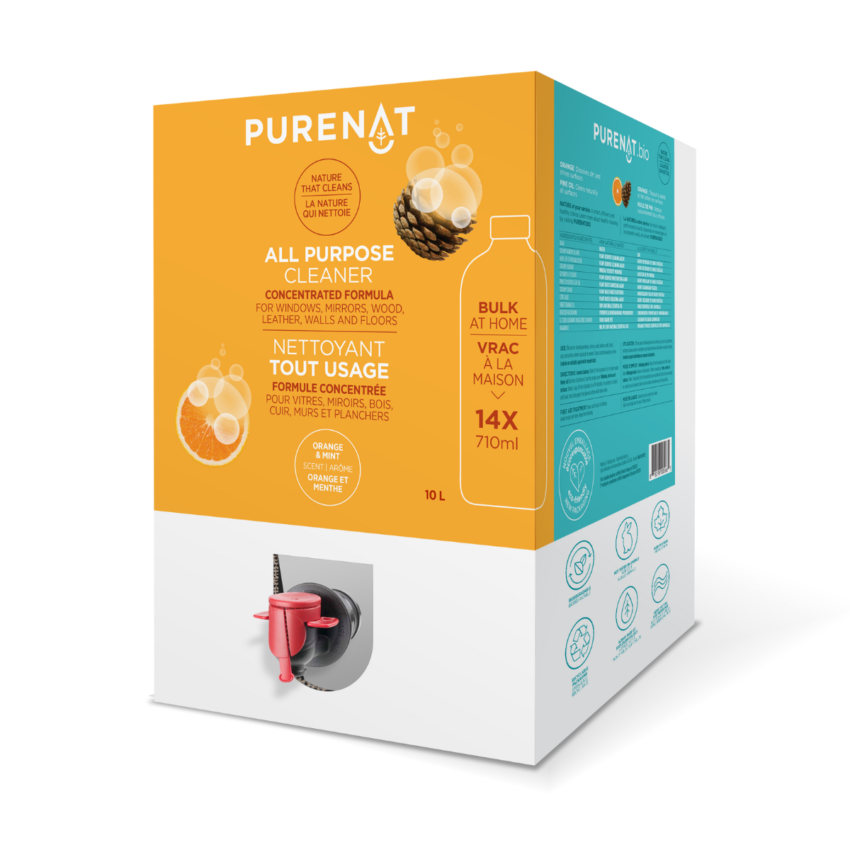 Nettoyage général : Diluer 125 ml de produit dans 8 litres d’eau tiède. Nettoyage lourd (cuisine et salle de bain) : Utiliser le produit pur. Vitres, miroirs et surfaces : Diluer 2 bouchons (10 ml) de produit dans une bouteille de 710 ml. Pour les surfaces en contact avec les aliments, bien rincer les surfaces nettoyées avec de l’eau potable.