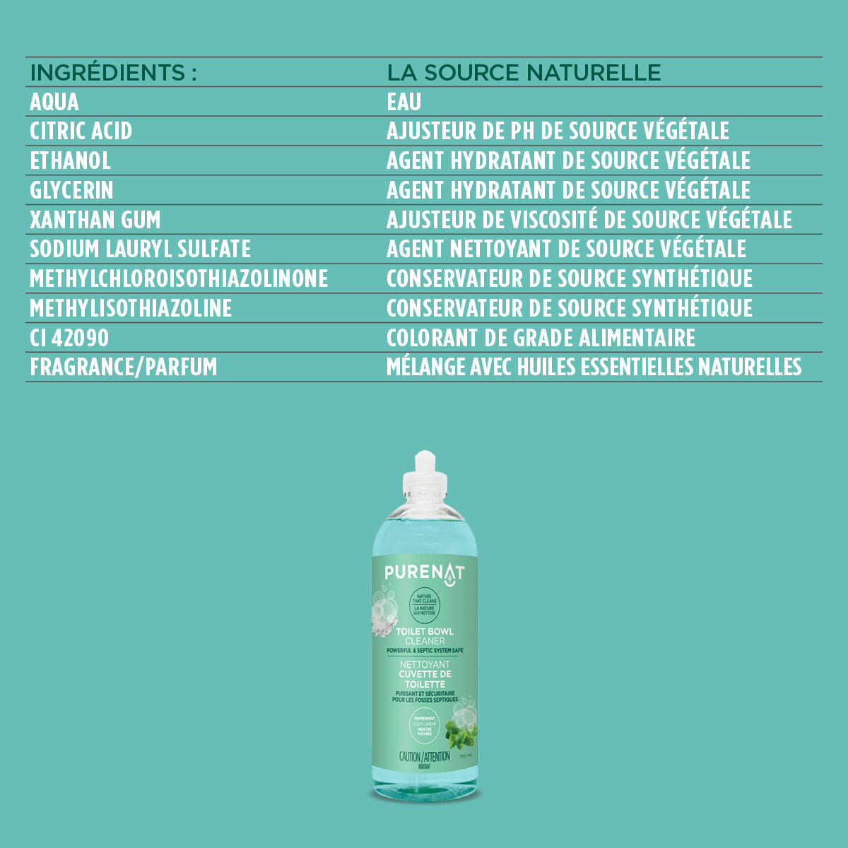Ce produit est un gros coup de coeur de notre clientèle. Avec son arôme de menthe poivrée, le nettoyant cuvette de toilette est l'allié naturel pour combattre les cernes. Efficace pour nettoyer et rafraichir toutes cuvettes. Vous pourrez dire fièrement que votre toilette sent bon!