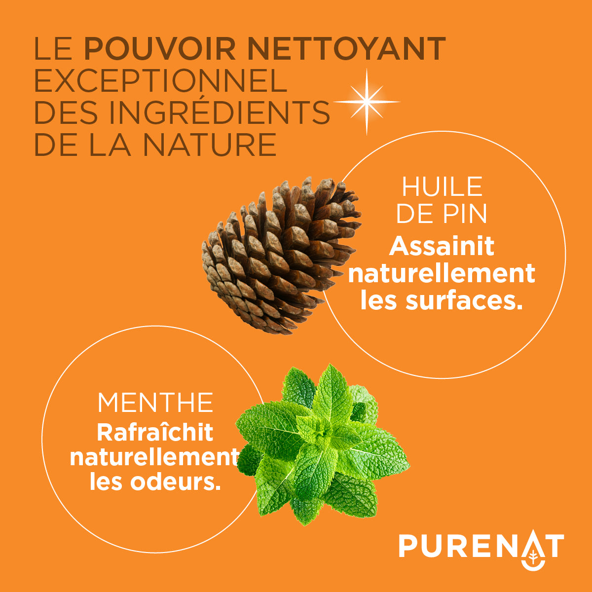 • Nettoie naturellement les surfaces grâce à l’huile de pin et aux huiles essentielles d’orange et de menthe (aucun parfum synthétique ni colorant)