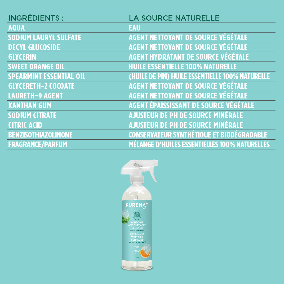 Le nettoyant vitres et surfaces est parfait pour des surfaces impeccables. Très efficace sur vitres, miroirs, bois et autres surfaces à pH neutre. L'huile d'orange fait briller vos surfaces, tandis que la menthe apporte une touche de fraîcheur.  Choisissez un nettoyage à la fois rapide et performant !